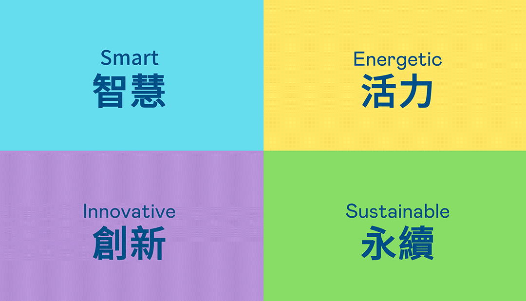 从稳重、信赖的东升国际蓝开创新色彩,注入象征智慧蓝、活力黄、创新紫、永续绿的品牌色及动态多变的几何图形,呼应不设限的「Possibilities」精神,代表多元的专业技术及领域,在碰撞中相互触动、融合、延伸,持续激荡出更多新的可能性。